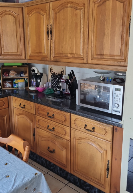 Mrs Silk’s kitchen in East Cowes was full of character but the dated oak doors and worn worktops made the space feel heavy and tired. With the room’s layout, She wanted a more contemporary, refined look that still worked. Quartzize provided the ideal solution — a sleek, low-disruption before-and-after refresh using premium doors and quartz overlays.