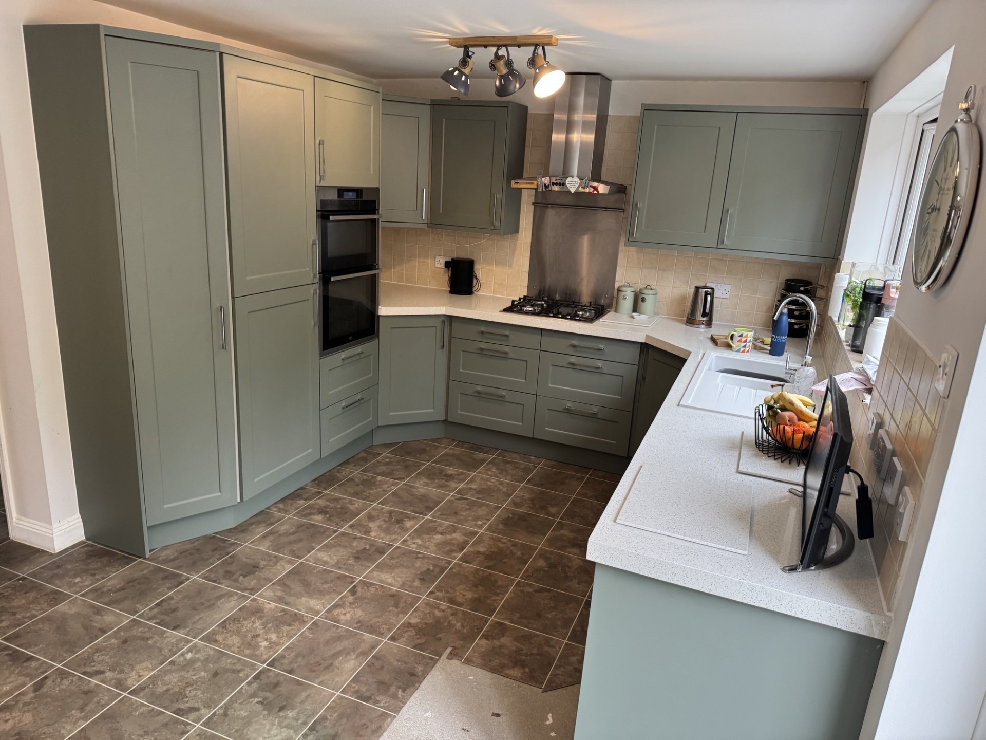 The combination of Matt Reed Green shaker doors and Carrara Gold quartz overlays completely revitalised Aaron’s kitchen. With a colour palette that balances freshness and warmth, The room now feels contemporary yet timeless,. The refresh proved that even without a full renovation, stunning results can be achieved quickly and cleanly.