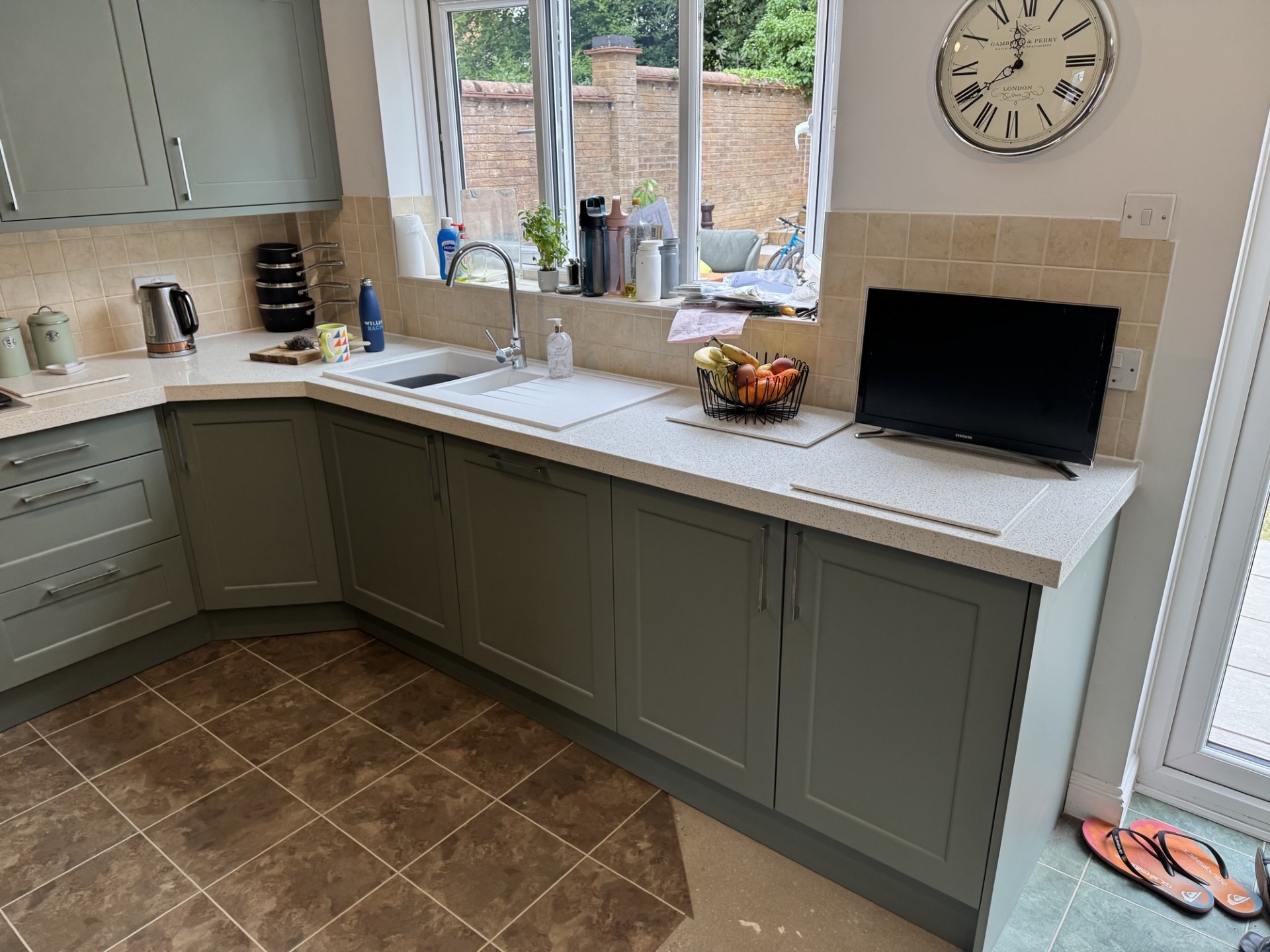 “The difference is night and day. The new Reed Green doors and Carrara Gold quartz worktops have made the kitchen feel fresh, sleek, and so much brighter.”– Aaron, Fareham